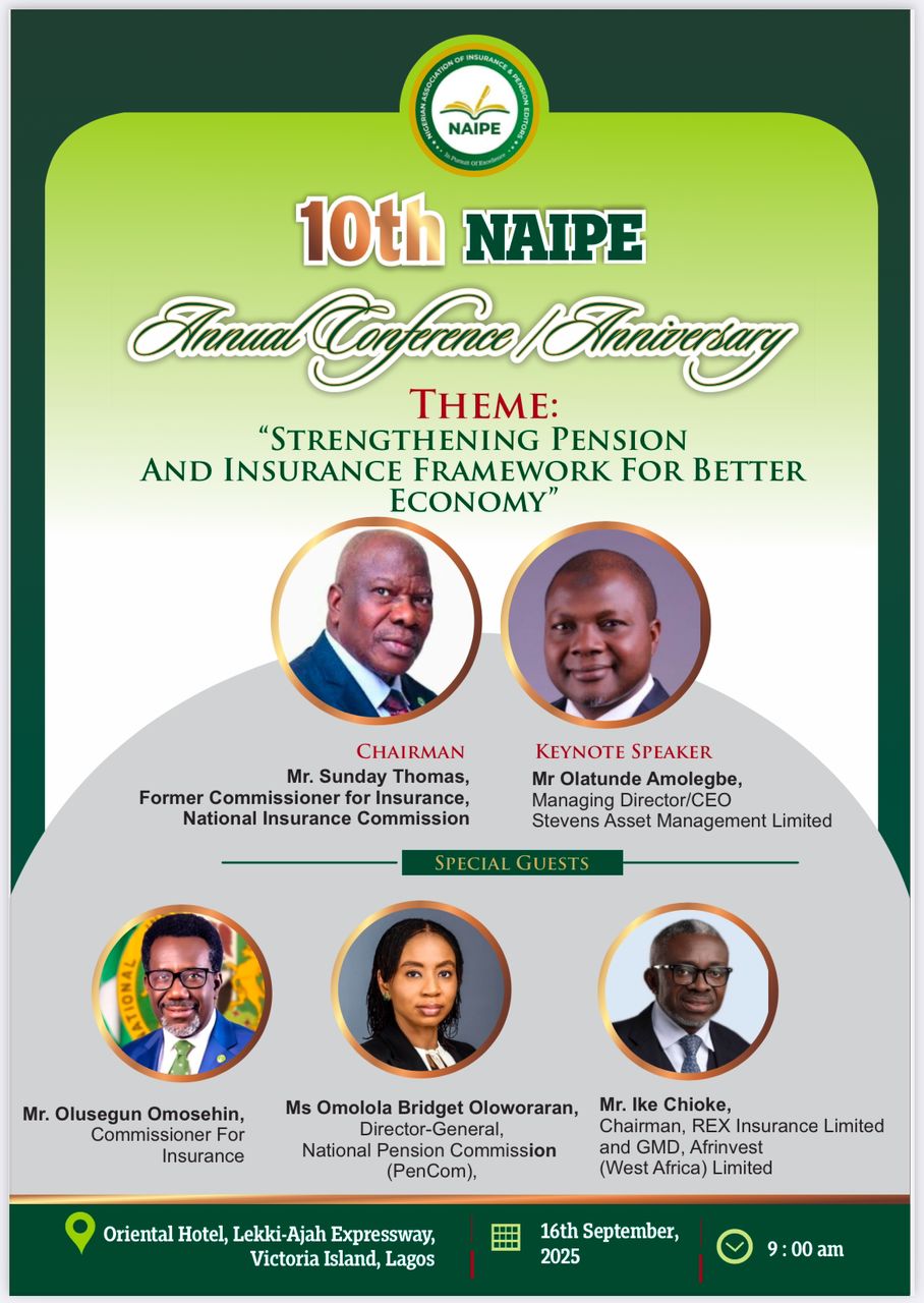 Nigerian Association of Insurance and Pension Editors (NAIPE) has completed plans for its Annual Conference/10th Annivers taking place tomorrow in Lagos.