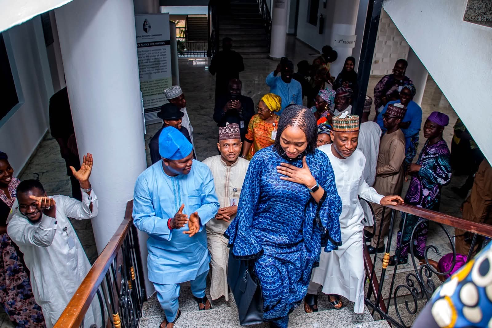 The visibly elated Oloworaran was welcomed at the entrance by a Team of Commissioners and Senior Management who accompanied her on the stairway to her office.